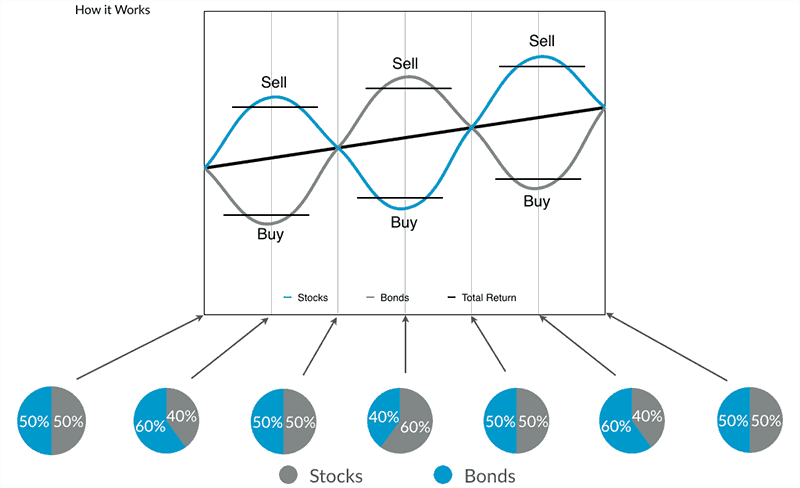 Rebalancing forces you to buy assets while they’re down and sell them while their up. If you stick with the process it becomes a no-brainer. Sell high, buy low – there are no alternatives.